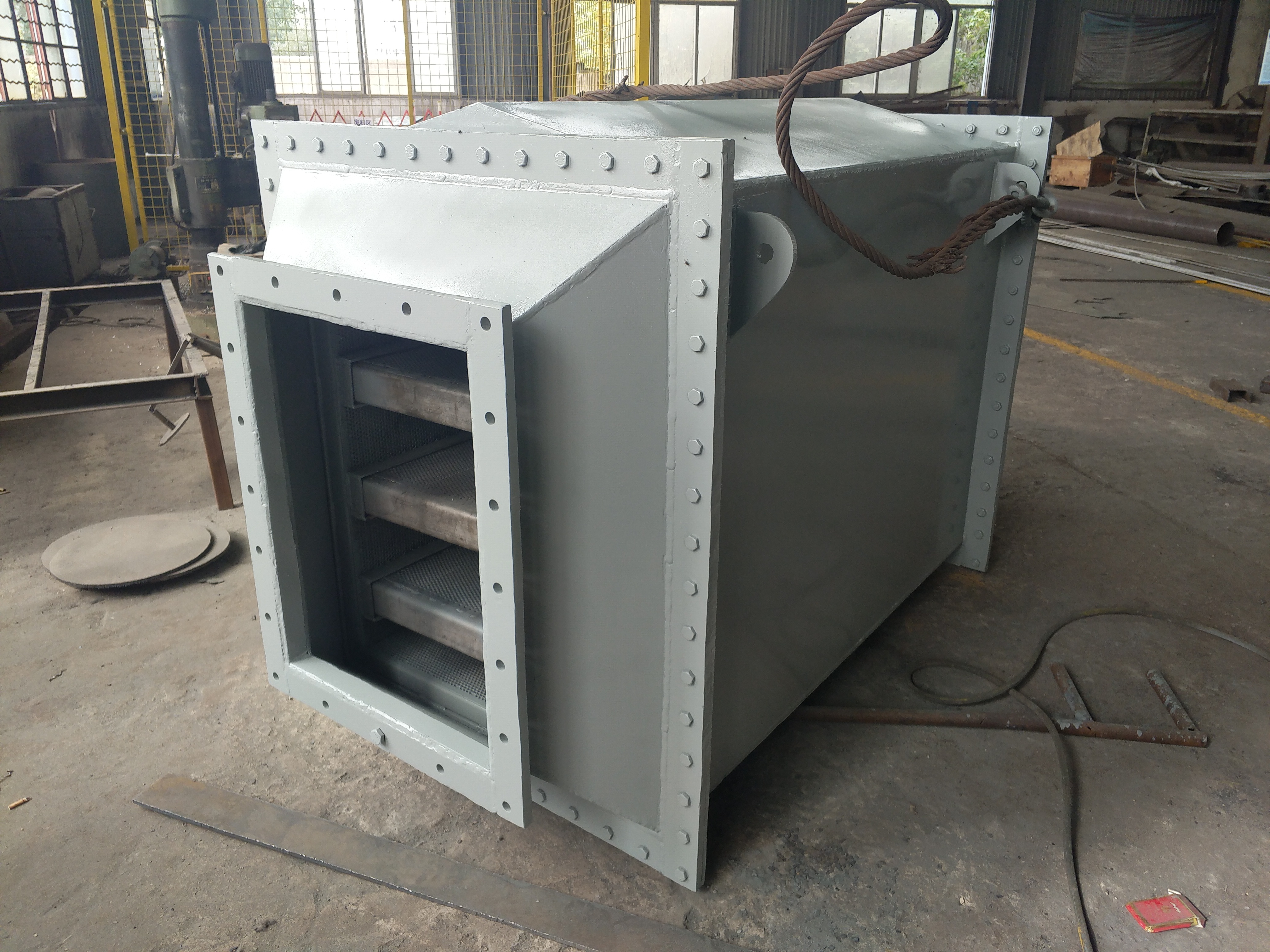 為此GFJ系列通風管道消-器及鼓引風機消-器均為阻抗聲流型,采用了對高、-頻噪聲起吸-消聲作用的阻式結構及對-、低頻噪聲起消聲降-作用的抗式結構,同時在阻式通道-采用了高頻及低頻兩種吸-消聲區,用以-大限度的增寬消聲頻帶,以實現良-的消聲降噪-果。